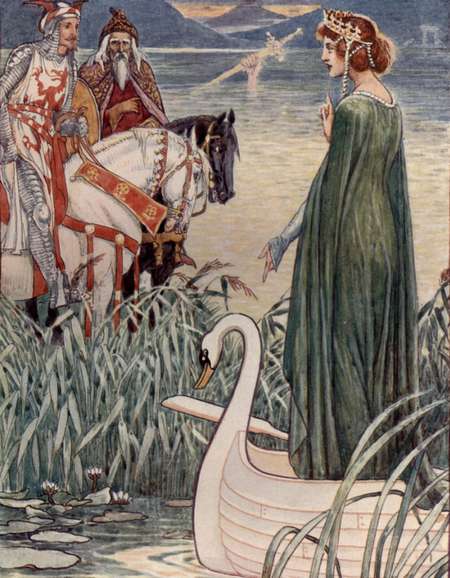 Bir el suyun yüzeyini kırdı ve mistik Gölün Hanımı bir hediye, bir kılıç, Excalibur ile ortaya çıktı. Gölün Hanımı bir Kelt iyiliği olarak biliniyordu ve diğer su perileriyle yakından ilişkiliydi.