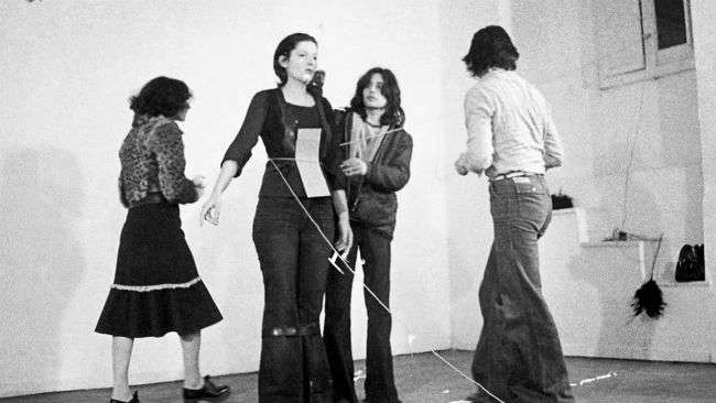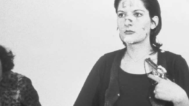 After the woman, the minority group, who were disturbed by what was done to the artist, put her in a protective circle, put her clothes back on, closed the wound on her neck, covered the other bleeding parts of her body with tape, and offered the woman a cigarette.