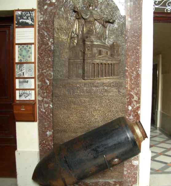 Naziler tarafından atılan ve düşen patlamayan bombayı kilisede düştüğü yerde görebilirsiniz.