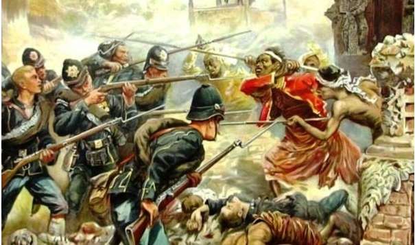 Bali halkı Bali'de yabancı işgalcilere karşı savaşıyor